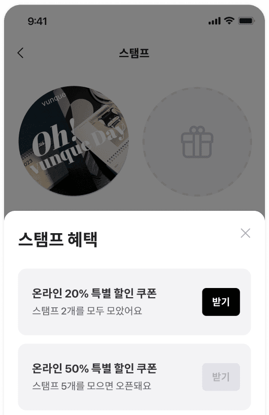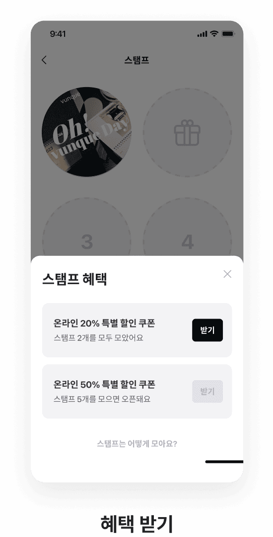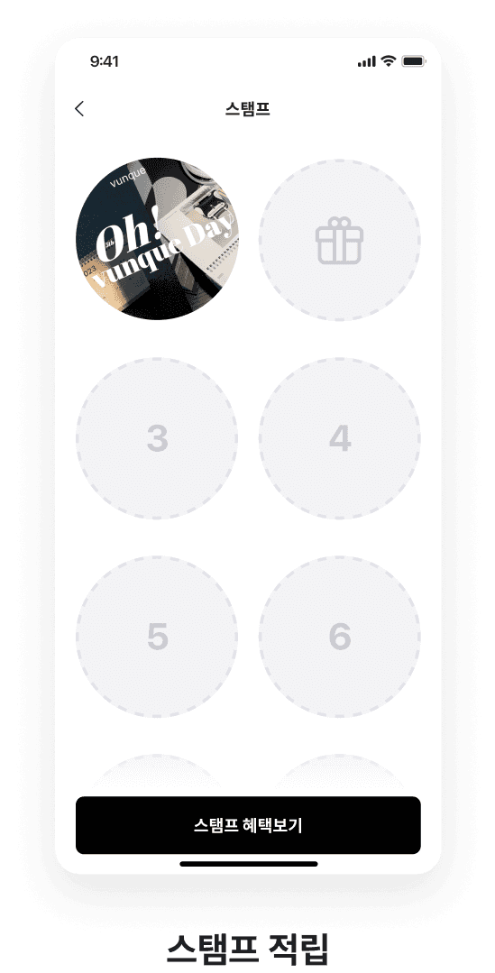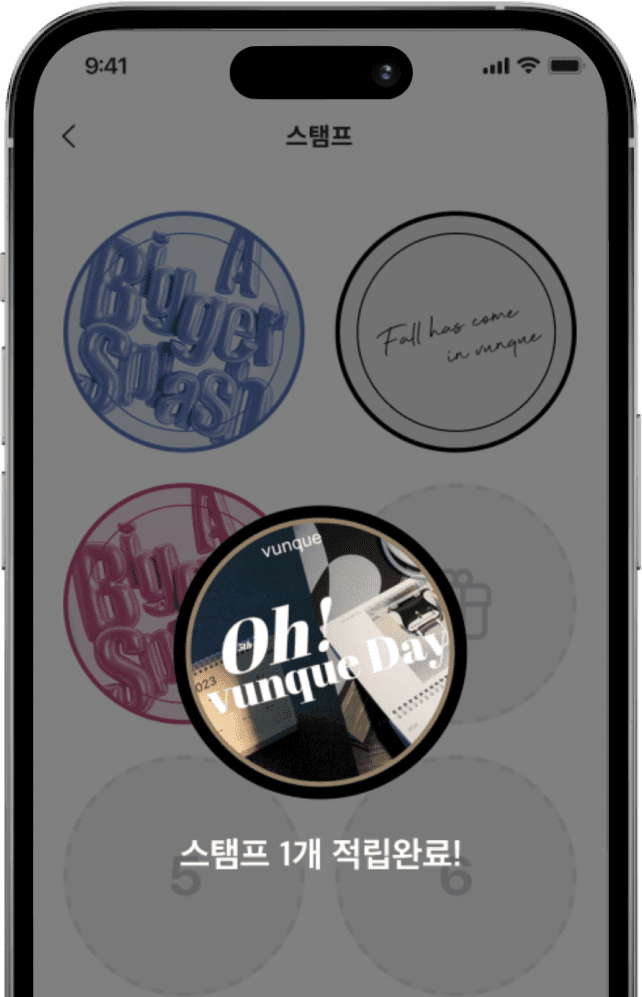 시즌마다 다른 스탬프 이미지를 적용하면 기간 한정판 스탬프 이벤트를 진행할 수 있습니다. 수집욕을 자극해 구매 욕구를 끌어올려 보세요!