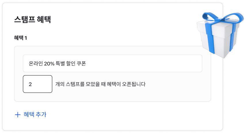 몇 개를 모았을 때 어떤 혜택을 제공할지 자유롭게 설정할 수 있어요