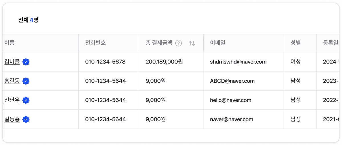 구매 고객 데이터를 한 곳에서 확인할 수 있어요!